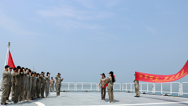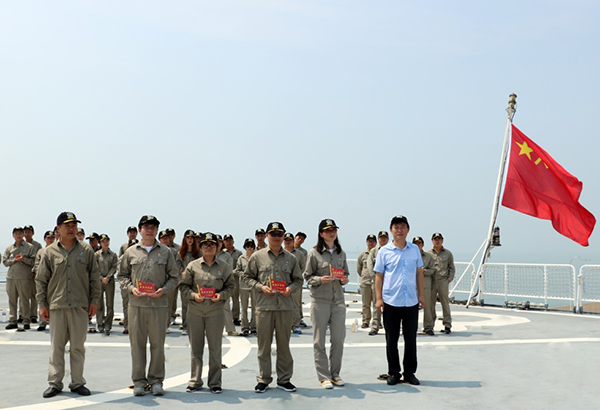 在軍艦上重溫入黨誓詞